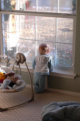 This is where Olin was when I got home yesterday. Standing looking out the window. Sure is a funny thing to see. He looks a little short compared to that window, doesn't he? And to think one day, very soon, we'll be the ones at the window watching him run around outside.